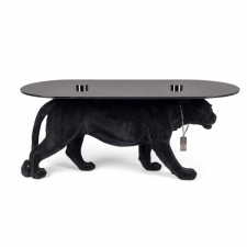 Van het Nederlandse merk Bold Monkey, bekend om zijn unieke en opvallende meubels, is deze salontafel een perfecte mix van functie en kunst. De krachtige zwarte panter ondersteunt het donkere, rookglasblad met zelfverzekerde stijl, waardoor de tafel een onmiddellijke blikvanger in elke kamer is – zowel praktisch als visueel spectaculair.