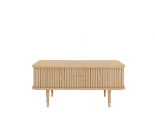 De tafel is uitgerust met innovatieve loop-schuifdeuren, wat het zowel soepel als uniek maakt. De solide eiken poten met gouden voeten geven een luxe touch aan het Scandinavische design. Perfect voor jou die een functionele en esthetisch aantrekkelijke salontafel wilt!
